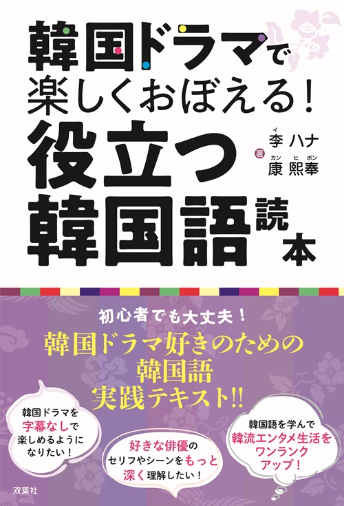 釜山(プサン)生まれのライターおよび翻訳家である李ハナと、韓国の歴史・文化・カルチャーや韓国語講座の著作が多い作家の康 熙奉(カン・ヒボン)の共著である同書は、韓ドラにハマったファンたちが好きな作品を通して、韓国語の会話や単語を楽しく学ぶための語学読本である。