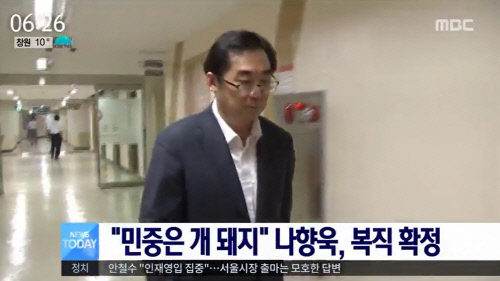 ナ・ヒャンウクは2016年7月、『京郷新聞』記者らとの夕食で「民衆は犬やブタだ」「身分制度を強固にしなければならない」などと発言した事実が公開され、罷免された。
