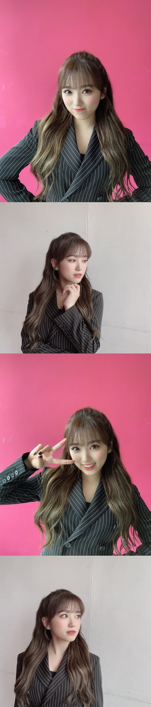 日韓合同アイドルグループIZ*ONE(アイズワン)の矢吹奈子が、大人のスーツスタイルを披露して注目を集めた。
