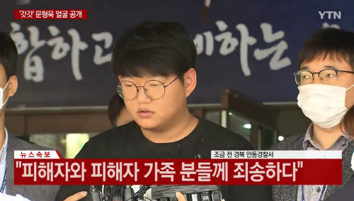 安東警察署の留置場に入監されていたムン・ヒョンウクは14時頃、検察への移送前に警察署の玄関に登場した。身元公開審議委員会の決定に基づき、帽子やマスクを着用することなく、メガネをかけた姿でカメラの前に立った。