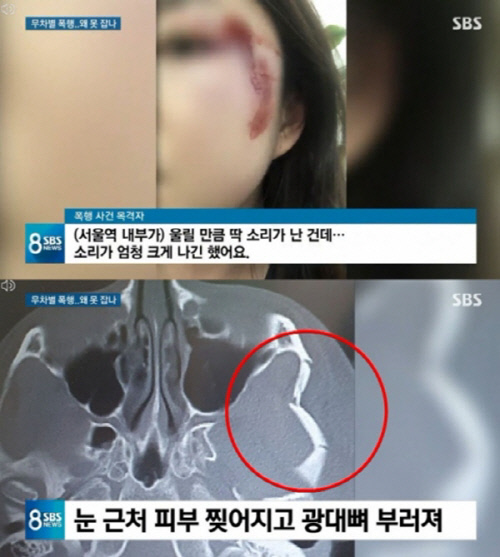 被害女性は左まぶたが破れ、頬骨を骨折。現在は手術を受け、病院で治療を受けている。