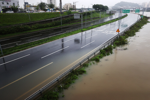 他にも江東(カンドン)大路オリンピック大橋南端交差点~トゥンチョン交差点と、ウミョン橋ヨンドン1橋~良才川(ヤンジェチョン)下部も現在、双方向の車両通行が制限されている。ソウル市内の主要道路では、雨道に車が徐行して長い行列を作った。