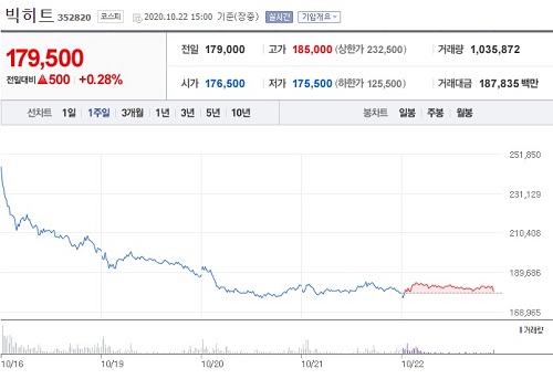 BTS(防弾少年団)の所属事務所として知られるBig Hitエンターテインメントの株価が10月15日の上場後、半分近くにまで暴落しているなかで、国民請願まで登場した。