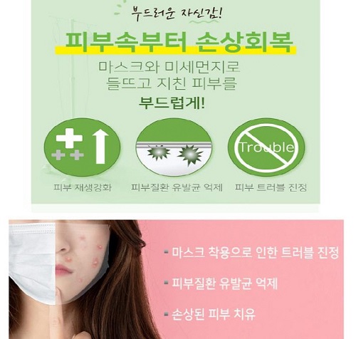 韓国食品医薬品安全処は、一部の商品は「マスク着用によるトラブル鎮静」「損傷した皮膚の治癒」などのフレーズを使用し、また違う商品は「皮膚の中から損傷を回復する」などと宣伝したと指摘した。