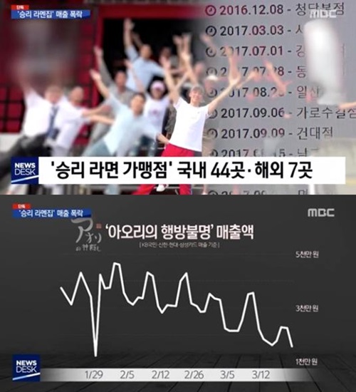 MBCの『ニュースデスク』は3月25日、韓国国内44店、海外7店に加盟店がある「アオリの神隠し」がオーナーのスキャンダルで被害を受けたと伝えた。