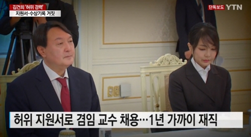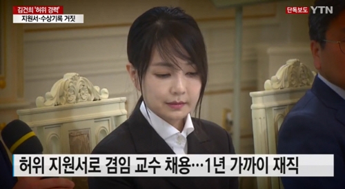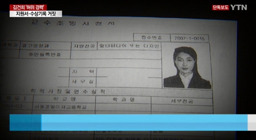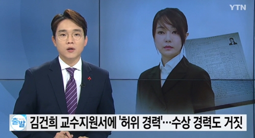 『YTN』は12月14日、「キム・ゴンヒ氏が過去、とある大学に提出した教授任用志願書に、虚偽の経歴と偽の受賞記録が記載された事実が確認された。当時の教授任用志願書を見ると、設立もされていない協会で働いたと書いていたり、受けてもいない大賞をもらったように書かれていた」と伝えた。