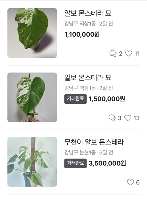 低価格の品物が主に取引されている韓国の中古マーケットで、目を疑うような価格の植物が飛ぶように売れていると話題だ。