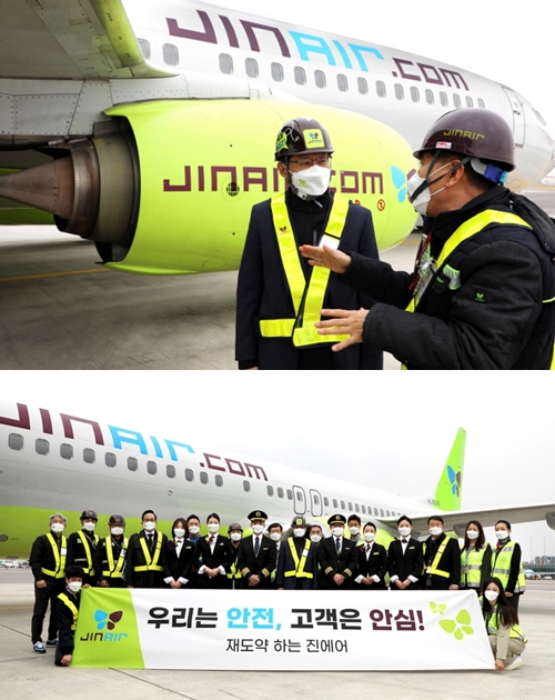 韓国の格安航空会社(LCC)ジンエアーが現場の安全点検を行い、本格的な国際線運航再開に向け準備を進めている。