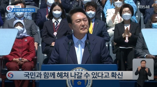ユン大統領は就任演説で、「自由、人権、公正、連帯の価値を基盤に、国民が真の主人である国、国際社会で責任を果たし、尊敬される国を偉大な国民の皆様とともに必ず作っていく」と述べた。