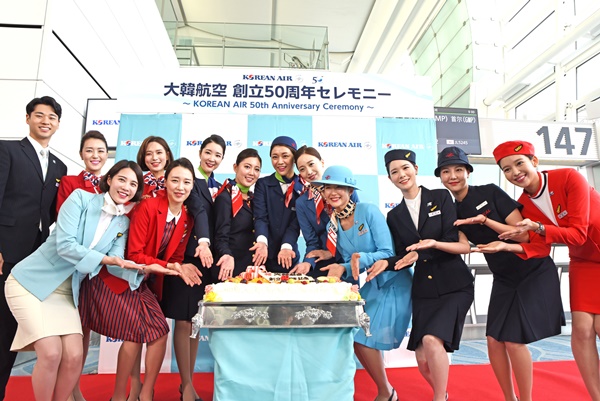 ソウルを中心に44カ国124都市に就航している大韓航空が創業50周年を迎え、羽田国際空空でも記念セレモニーを行った。