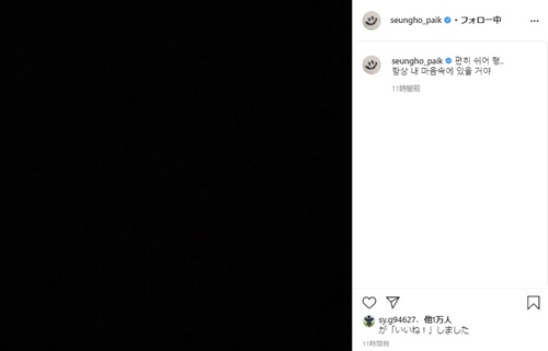 「ゆっくり休んで、ヒョン(兄さん)…いつも僕の心の中にいるよ」とキャプションに綴り、1枚の真っ黒な画像を投稿した。
