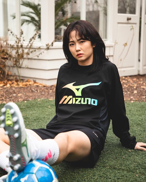 写真を見ると、ミズノのトレーニングウェアを着用したイ・ミナが写っている。何気ない表情でカメラを見つめたり、笑顔でリフティングをしてみたりと、自然体な姿をファンに披露した。