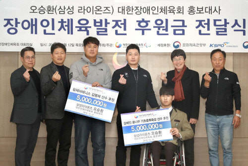 大韓障害者体育会の広報大使を務める元阪神タイガースのオ・スンファン(現サムスン・ライオンズ)が、今年も後援金を渡すようだ。