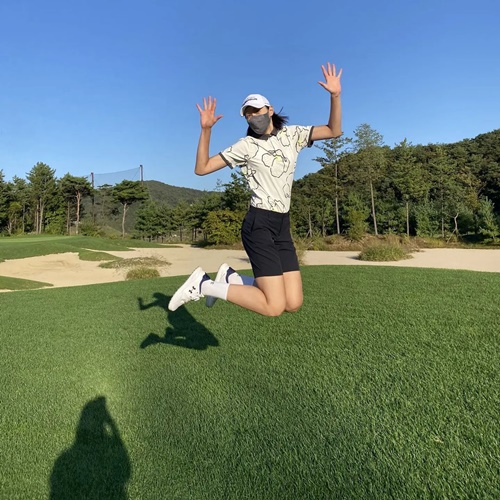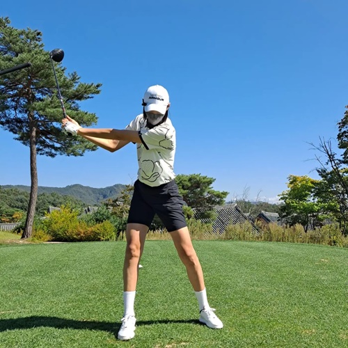 写真を見ると、束の間の休日にゴルフを楽しむキム・ヨンギョンの姿が写っている。普段のバレーユニと違うゴルフウェア姿が新鮮なのはもちろんのこと、ハーフパンツからスラリと長く伸びた脚が見た者の目を引いた。