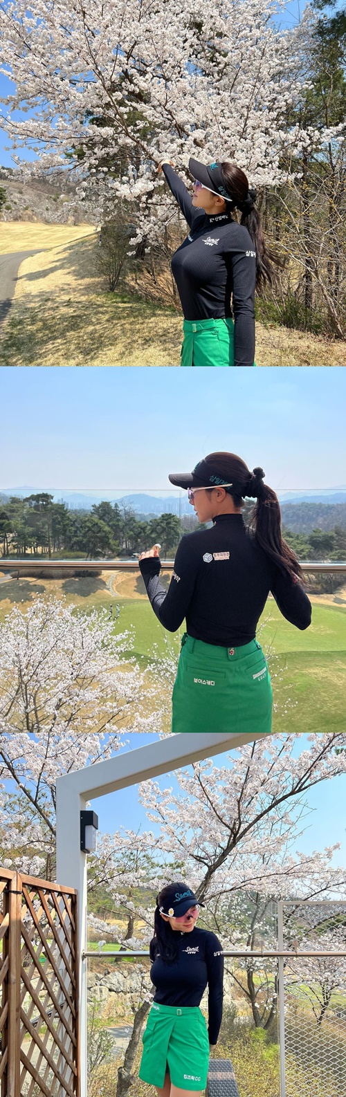 動画とともに公開された写真を見ると、ゴルフウェア姿のアン・ソヒョンが桜の木の下でポーズを取っている。サングラスをしていても伝わるキュートな表情はもちろん、タイトなウェアからのぞくメリハリあるスタイルが見る者を虜にした。