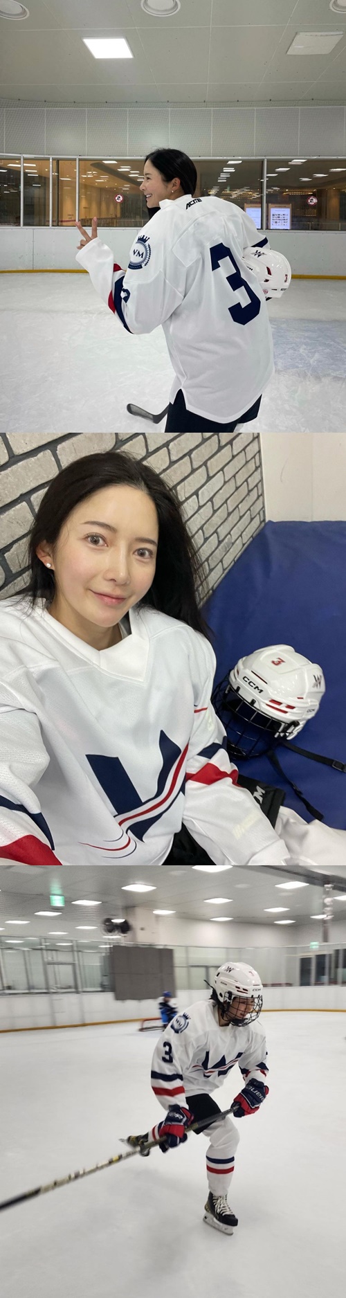 写真を見ると、ソウル市内にあるスケートリンクの上でアイスホッケーのウェアに身を包んだジョン・ジユが、カメラに背を向けてピースをしたり、ベンチで自撮りを撮ったりするなど、美貌を存分に披露している。