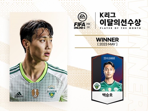 Kリーグを管轄する韓国プロサッカー連盟は、Kリーグ公式ゲームパートナーのグローバルゲーム企業「EA(エレクトロニック・アーツ)」が後援する5月の「EA SPORTS Kリーグ今月の選手賞(EA SPORTS K LEAGUE Player Of The Month)」にペク・スンホが選ばれたことを発表した。ペク・スンホは自身初の受賞となる。