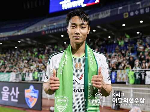全北現代(チョンブク・ヒョンデ)モータースのMFペク・スンホ(26)が、5月のKリーグ月間最優秀選手に選ばれた。