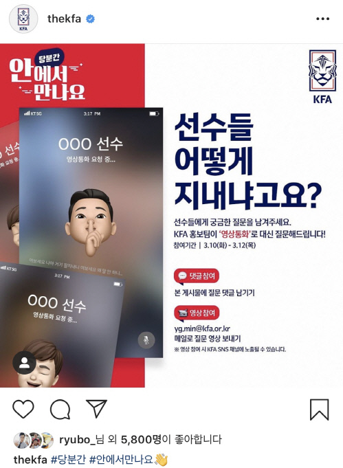 協会のイ・ジフン広報チーム長は「3月の招集が今年初めて集まる期間だったことから、ファンも多くの期待をしただろう。失望感が大きかったであろうことも容易に想像できる。だからこそ、広報チームも真剣に悩んでアイデアを絞り出し、テレビ電話イベントを実施することを決めた。“外出できないなら中で会おう”というコンセプトで企画を立てた」と、イベント実施の経緯を話した。