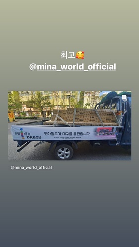 公式ファンクラブの善行にイ・ミナ本人も反応。インスタグラムのストーリー機能で『ミナワールド』の投稿を引用すると、「最高」とコメントを添えた。