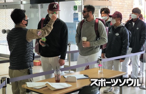 実際KTウィズの選手たちは、中央出入口を通じて球場内に入る際、あらかじめ作成された個人情報と問診票を提出して発熱チェックまで終えてから、ダッグアウトに向かった。