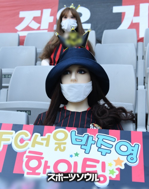 スタジアムにあってはならない“モノ”がファンの代わりを務めていた。去る5月17日、ソウルワールドカップ競技場で行われたKリーグ1(1部)第2節のFCソウル対光州FC戦で、観客席にアダルトグッズと思われるマネキンが座っていたのだ。