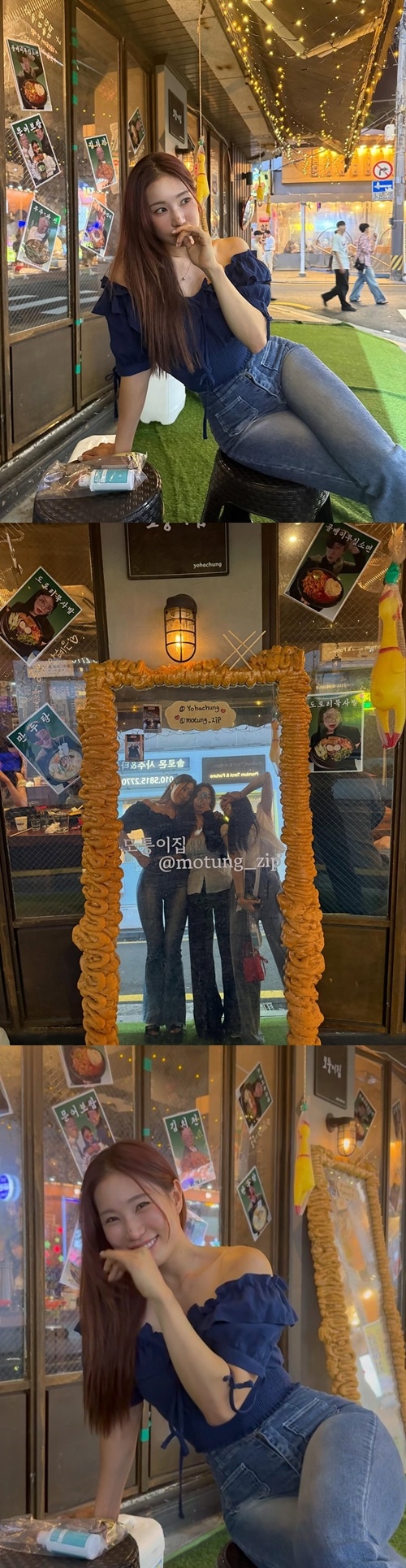 公開された写真には両肩を露出したトップスにデニムを合わせた私服姿のユ・ヒョンジュが写っている。