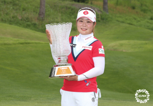 (写真提供=KLPGA)「E1チャリティーオープン」優勝トロフィーを手にするイ・ソヨン