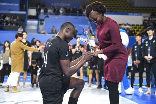今年1月、本拠地の柳寛順体育館で恋人のナンジリ・サンドラさんにプロポーズしたダウディは当初、シーズン終了後に本国に帰り愛する恋人と百年の契りを結ぶ予定だった。7月と8月に伝統婚礼と結婚式の本式を分け、一世一代の重大事を執り行おうとしていた。