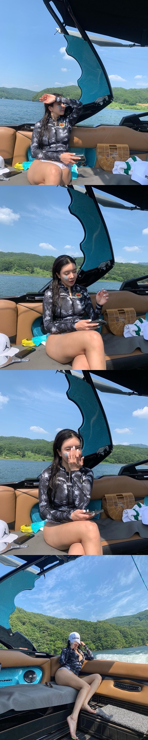 写真の中のアン・シネは、水着の上から柄の入ったタッパーを身にまとい優雅なひと時を過ごしている。圧巻のボディラインはさることながら、スラリと伸びた美脚も見るものの目を引く。