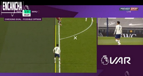 実際に中継画面を見ても、ソン・フンミンの左足がオフサイドラインよりも数cm前に出ていたことがわかる。
