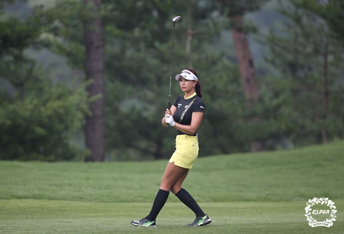 ユ・ヒョンジュは今大会、2日目はブラックとイエローを組み合わせたタイトなゴルフウェア姿でホールを回っていた。そんな彼女のプレーの模様を写真で見てみよう。