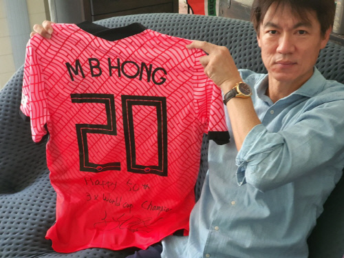 ホン・ミョンボは自身を象徴する背番号20番の韓国代表ユニホームにサインをし、ペレ財団に送った。