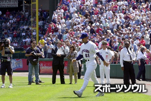 レンジャーズでのデビュー戦となった2002年4月2日のオークランド・アスレチックスとの開幕戦は、5イニングを投げ6失点と崩れた。