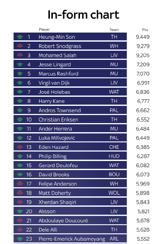 2人はソン・フンミンとともにポイントを競い合っていたが、ソン・フンミンのエバートン戦の大活躍の勢いに押されて順位を下げざるを得なかった。