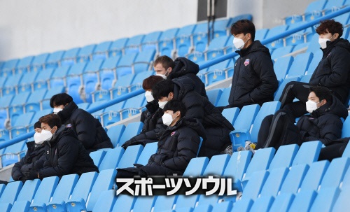 今年4月の無観客・練習試合を見つめる仁川ユナイテッドの選手たち