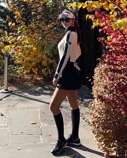 写真を見ると、ゴルフカーで脚を組みながらハンドルに手をかけるユ・ヒョンジュの姿が写っている。上にジャケットを着ていても際立つ圧巻のスタイルには、思わず惹きつけられてしまうような魅力を感じられる。