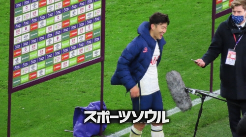 試合後に笑顔でインタビューを受けるソン・フンミン