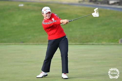 キム・ヒョージュ(25)は6番ホール(パー4)のダブルボギー以降、10番ホール(パー5)のイーグルに加えてバーディ2つを奪い首位2打差の2位タイで大会を終えた。キム・ヒョージュは、賞金ランキング1位と平均ストローク数1位の座を固めている。。