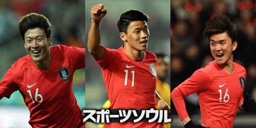 FW:ソン・フンミン(28、トッテナム)、ファン・ヒチャン(24、ライプツィヒ)、イ・ガンイン(19、バレンシア)、イ・ドンジュン(23、釜山アイパーク)、ナ・サンホ(24、城南FC)、オム・ウォンサン(21、光州FC)、ファン・ウィジョ(28、ボルドー)