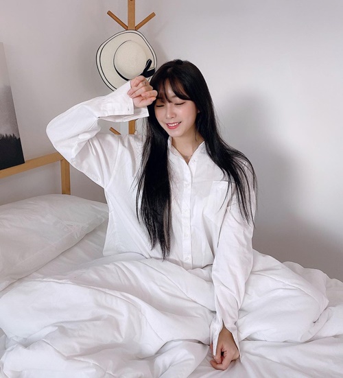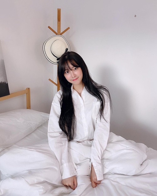 写真を見ると、上下白のコーディネートに身を包んだアン・ジヒョンが、ベッドの上でまるで寝起きのようなポーズを披露している。チアリーダーとして活動する普段とは違った魅力を発散する彼女の姿に、見た者の多くが目を惹きつけられた。