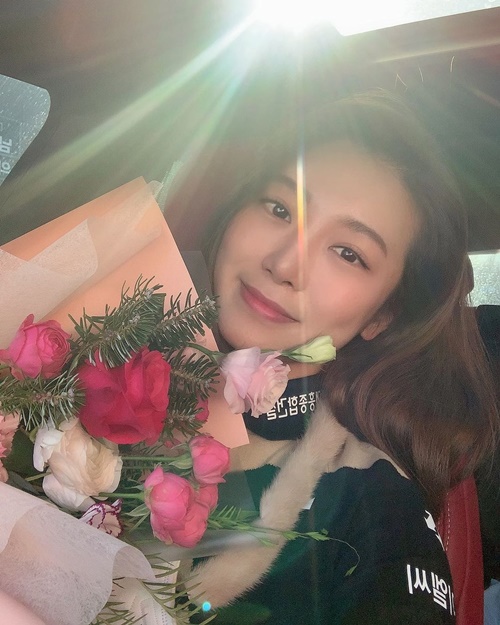 写真を見ると、車内と思しき場所で自撮りをするアン・ソヒョンが写っている。背景から差す陽の光にも負けない晴れやかな笑顔はもちろんのこと、色鮮やかな花束が彼女の魅力を一層引き立てている。