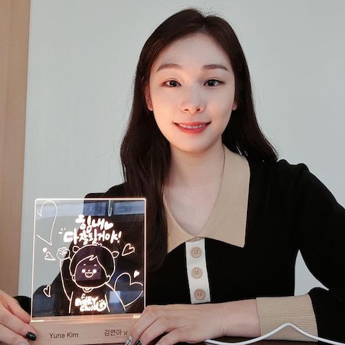 キム・ヨナは12月17日、自身のSNSを更新。「頑張って きっとうまくいくよ」と書かれた卓上ライトと一緒に撮った写真を投稿した。