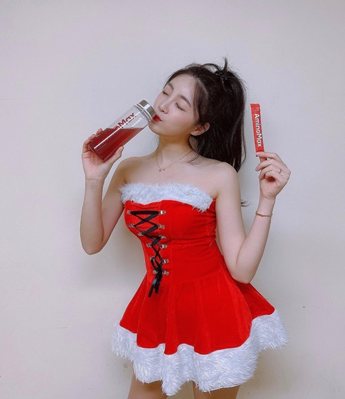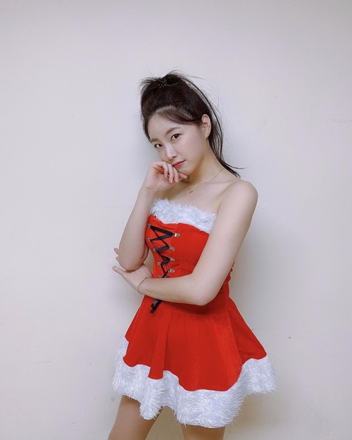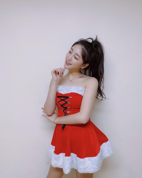 写真を見ると、オフショルダーのサンタコス姿に変身したアン・ジヒョンが、カメラに向かってキュートなポーズを振りまいている。思わず目を引く圧巻のルックスはもちろんのこと、透き通るような美肌がファンを魅了した。