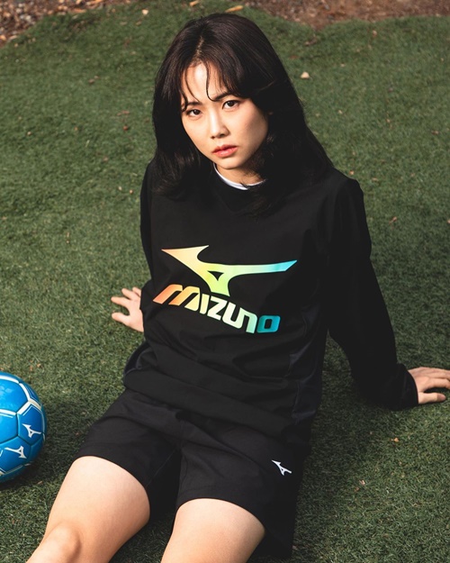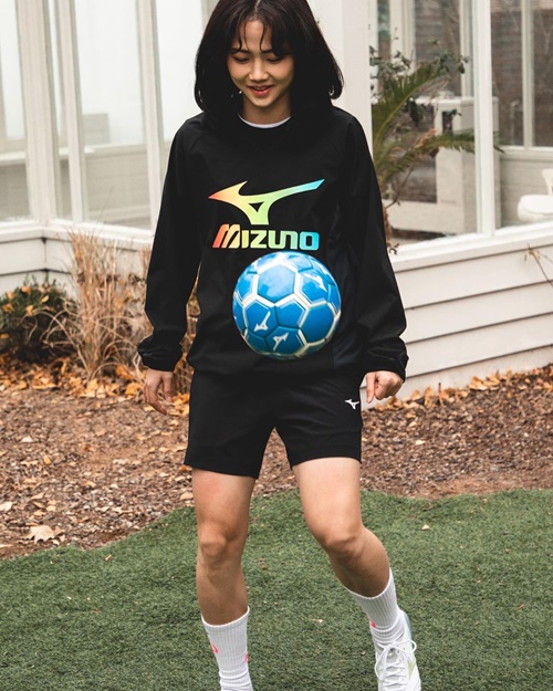 写真を見ると、ミズノのトレーニングウェアを着用したイ・ミナが写っている。何気ない表情でカメラを見つめたり、笑顔でリフティングをしてみたりと、自然体な姿をファンに披露した。