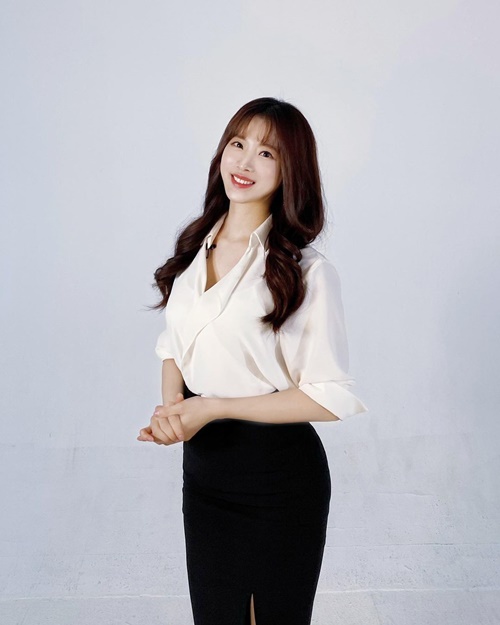 写真を見ると、白のブラウスに黒のスリットスカートを合わせたキム・ハンナがカメラに向かってポーズを取っている。オフィスルックでも伝わるスタイルの良さが見る者の多くを惹きつけた。