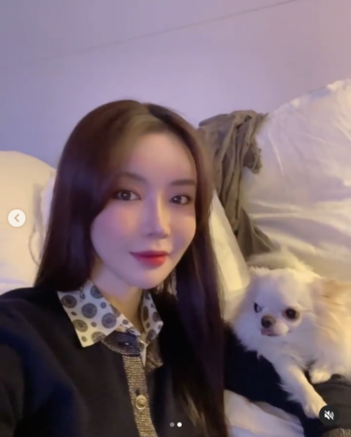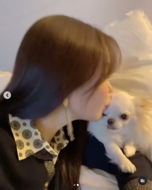 可愛らしい“犬パンチ”にびっくりした表情を見せたり、愛犬のおでこにキスしてみたりと、愛らしい日常をファンに披露した。