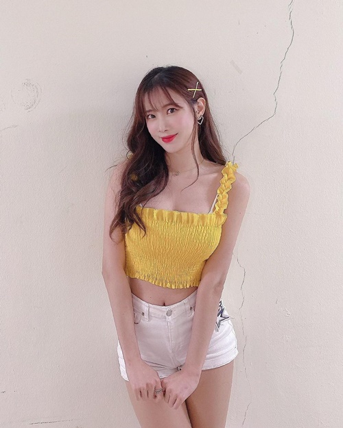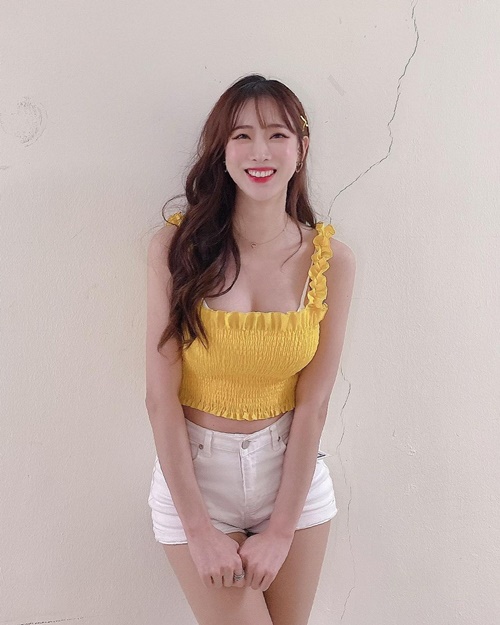 写真を見ると、黄色のフリルキャミソールに白のホットパンツを合わせたキム・ハンナが写っている。カメラに向かって振りまく満面の笑顔はもちろんのこと、思わず見入ってしまうようなスタイルの良さが多くのファンを魅了した。