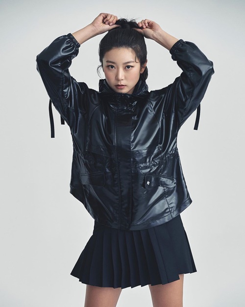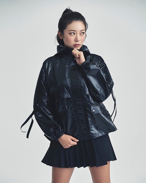 アン・ソヒョンは黒を基調としたゴルフウェア姿で、カメラに向かって多彩なポーズを披露している。前髪を上げたヘアスタイルが印象的ながら、凛とした表情がシックな雰囲気を漂わせた。