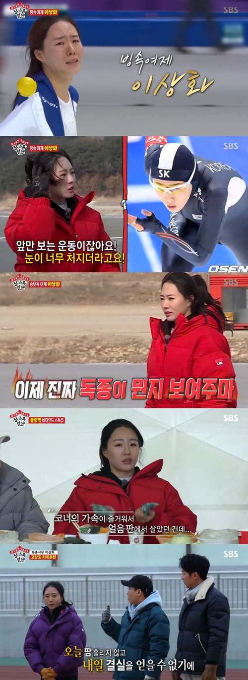 零下10度の江原道(カンウォンド)の麟蹄(インジェ)に集まった番組レギュラーたちの前に姿を現したイ・サンファは、登場するなりちょっと綺麗になったという反応を受けて、「少し目をいじりました(笑)。スケートをするとき、前を見なければならないのにまぶたが落ちてしまうので」と、プチ整形したことを告白した。